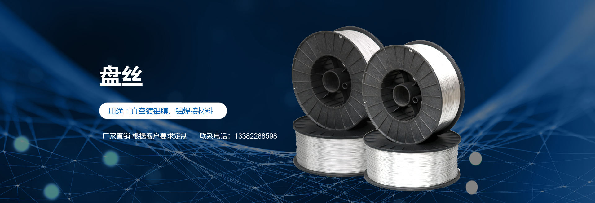 高純度鋁絲:公司主打產品。SGS認證產品,適用于真空鍍鋁。純度99.9%。可為客戶量身定做生產的各盤裝鋁絲、鋁直條。產品應用領域十分廣泛,如:真空鍍鋁膜、電器儀表、電子、家電業、電線電纜業、建筑裝飾業、五金裝飾業、IT電腦業、廣告裝飾業、醫(yī)療器械、工藝制品、防腐制品(大型港口、橋梁、碼頭)、食品包裝容器、紡織服裝等。